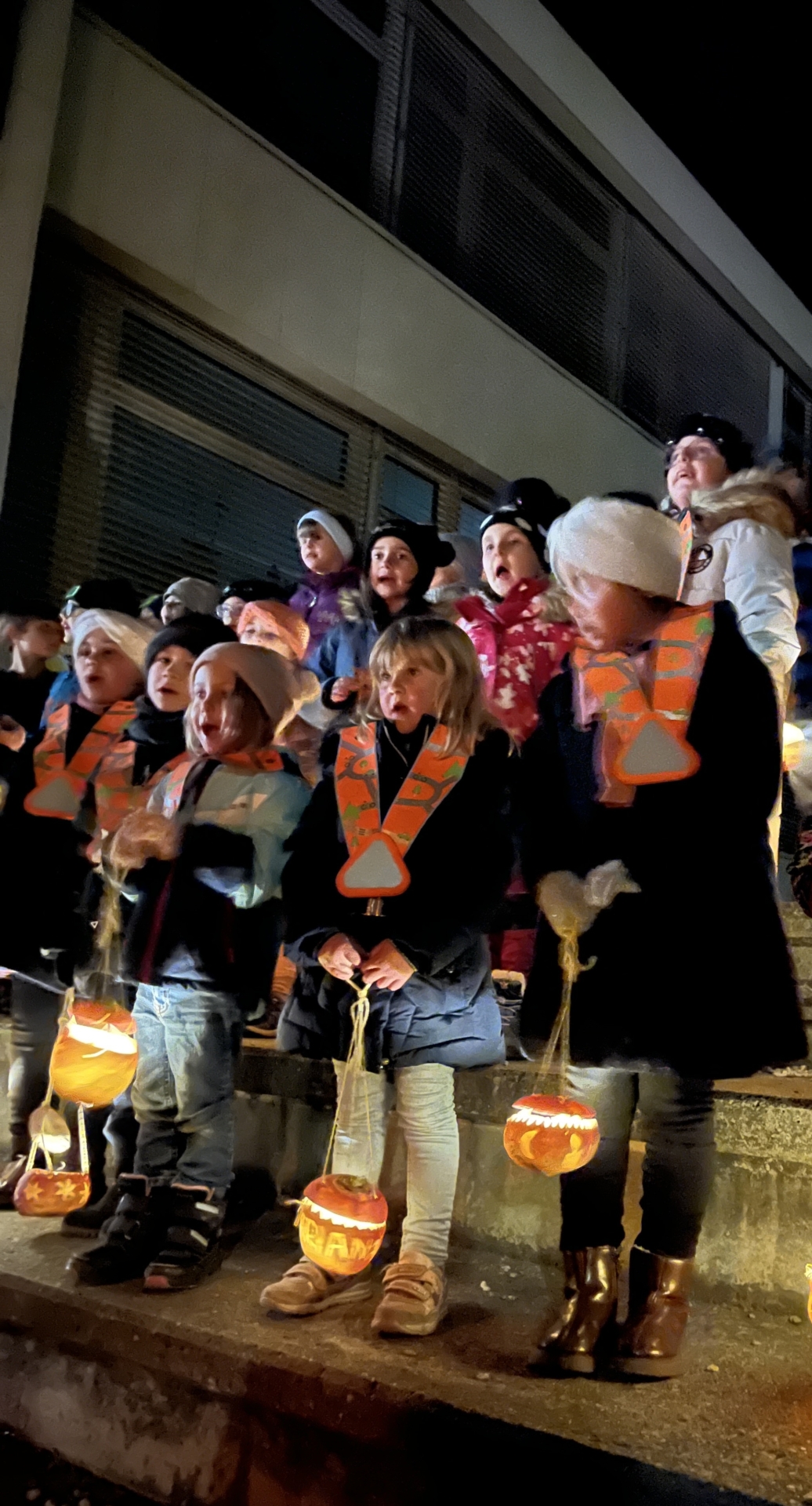 Am Mittwochabend 12. November fand unser jährlicher Sternenmarsch statt. Dieses Jahr trugen die Kindergartenkinder die von ihren Vätern geschnitzten Räbenlichter durch die dunklen Strassen des Dorfes. Die vier Gruppen starteten mit ihren Familien von vier verschiedenen Richtungen. Auf dem Weg sangen sie bereits Herbst- und Räbenlichterlieder und verbreiteten damit eine festliche Stimmung. Auf dem Schulhausplatz trafen dann alle ein und bildeten einen grossen Kinderchor. Es ertönten die Lieder in die dunkle Sternennacht. Es war wunderschön, wie die leuchtenden Räben in der Dunkelheit strahlten und die Gesichter der Kinder im Schein des Lichtes leuchteten.