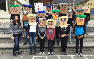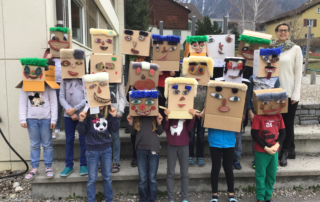 Wir haben im Werken lustige Schachteln gebastelt. Dabei lassen sich Augen, Mund und Nase beliebig austauschen. Unsere 3.Klässler haben auch mehrere Gesichtsausdrücke gemalt, so dass lustige Gesichter zustande gekommen sind. Es hat uns sehr viel Spass gemacht. Danke, dass alle Klassen bei uns vorbei gekommen seid.