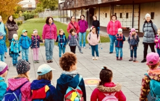 Die Kindergarten Salamander blau und Schloss waren zusammen auf der Herbstreise. Sie wanderten gemeinsam bei schönstem Wetter auf den Igiser Spielplatz. Die Kinder genossen den Tag mit spielen und Leckereien aus ihrem Rucksack.
