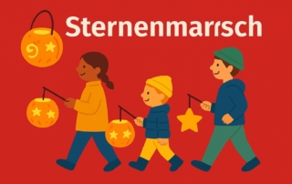 Am Mittwochabend 12. November fand unser jährlicher Sternenmarsch statt. Dieses Jahr trugen die Kindergartenkinder die von ihren Vätern geschnitzten Räbenlichter durch die dunklen Strassen des Dorfes. Die vier Gruppen starteten mit ihren Familien von vier verschiedenen Richtungen. Auf dem Weg sangen sie bereits Herbst- und Räbenlichterlieder und verbreiteten damit eine festliche Stimmung. Auf dem Schulhausplatz trafen dann alle ein und bildeten einen grossen Kinderchor. Es ertönten die Lieder in die dunkle Sternennacht. Es war wunderschön, wie die leuchtenden Räben in der Dunkelheit strahlten und die Gesichter der Kinder im Schein des Lichtes leuchteten. «Mis Räbeliechtli, bald isch din Tag [...]