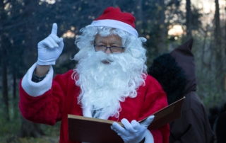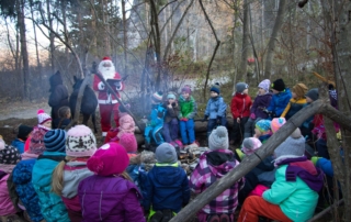 Am 6. Dezember machten sich alle Kindergartenkinder auf den Weg in den Wald und waren gespannt, ob der Samichlaus dieses Jahr vorbeikommt. Beim Spielen im Wald hörte man von der Strasse her die Glocke läuten. Die Aufregung und die Freude war gross, als der Chlaus mit Schmutzli und Esel kam. Nachdem die Kinder Verse und Lieder vorgetragen haben, bekamen sie einen Sack voll Leckereien.
