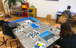 Anstelle einer Weihnachtsfeier, gab es in diesem Jahr einen Morgen lang verschiedene Workshops, für welche sich die Schüler anmelden konnten. Während die einen Sterne aus verschiedenen Materialien herstellten, studierten andere einen Tanz ein. Eine Gruppe probte für den Theaterauftritt vom Februar. Eine andere Truppe widmete sich der Kunst und stellte Bilder mit Acrylfarben her. Wieder andere probierten sich im Handlettering. Auch die Küche blieb nicht leer, dort wurde fleissig gebacken und verziert. Und in der Werkstatt wurden Holzsterne produziert. In der Pause gab es Grittibänzen und Punsch, bevor es wieder an die Arbeit ging. Auch mit Keramik wurde gearbeitet [...]